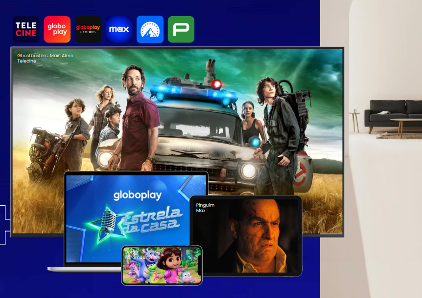 Planos de internet com os melhores serviços de Streaming para todos os gostos. Filmes, séries, documentários, esportes, desenhos e muito mais.